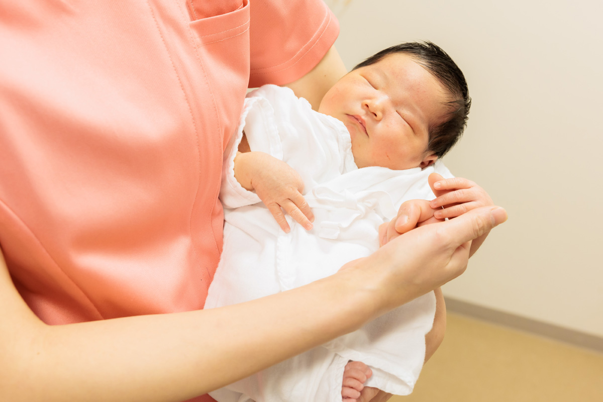 産後2週間めに、お母さんと新生児のケアを行っています(2週間健診)。退院後の育児や心のケアを助産師が担当します。