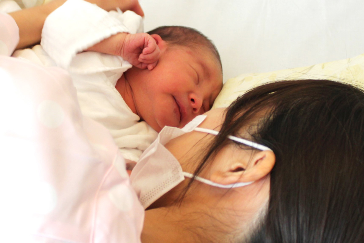 赤ちゃんとお母さんのリズムに合わせた母乳育児を推進しており、早期母児接触(カンガルーケア)や分娩翌日からの母子同室(褥婦さんの疲労が強くない場合)を行っています。