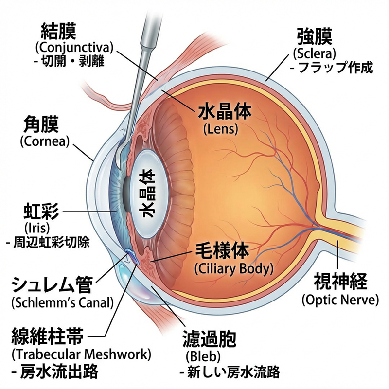 - 低侵襲緑内障手術(MIGS):線維柱帯切開眼内法